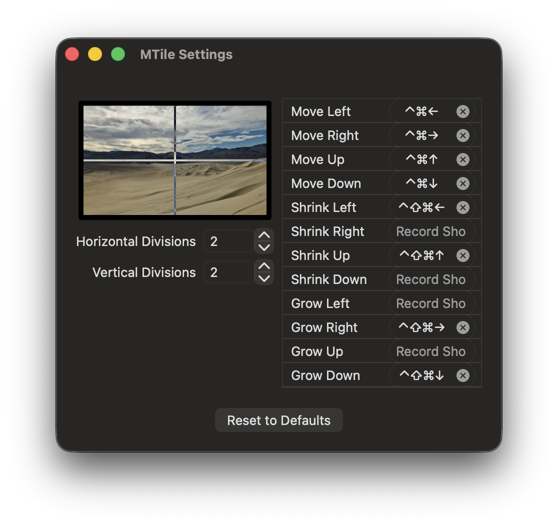 - Custom keyboard shortcuts to move and resize windows